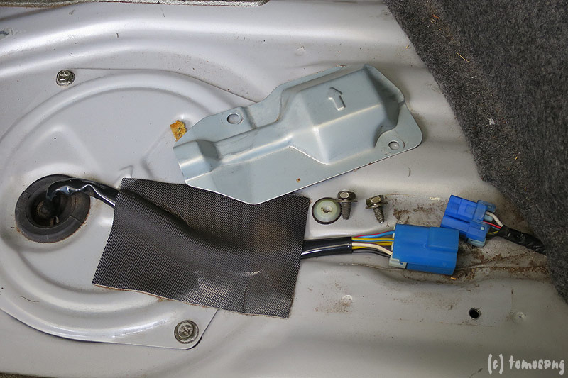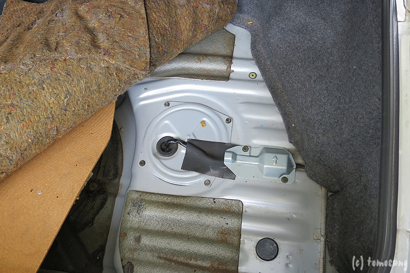 ポンプのカプラーはトランクルームの絨毯を捲れば下にあります。