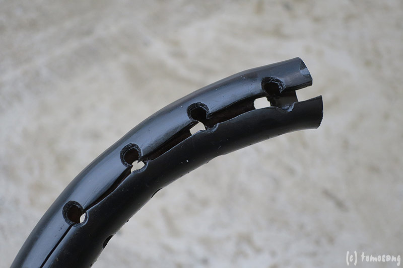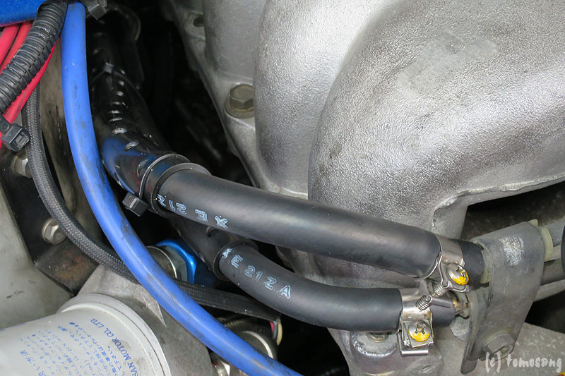 今回作業で一番苦戦したのが、擦れ防止にホースへ取り付けられているプロテクターにホースを通すこと。CRCを塗ったりと色々やってみたけど通らず。最終的に切込みを入れた。