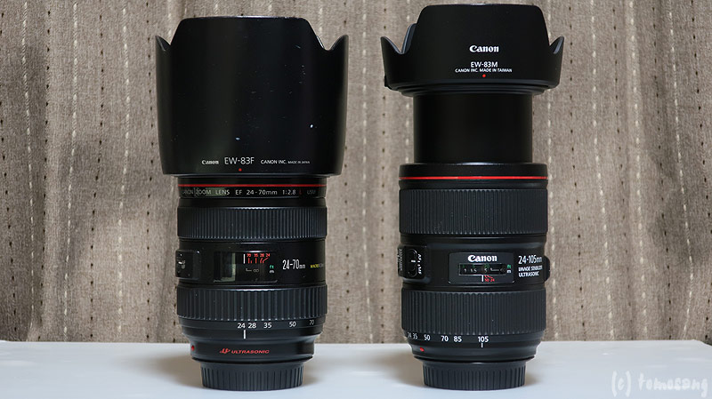 F4と思いつつ長年手を出さなかった理由の一つがフードの取り付け位置。今のレンズはズームすると一緒に動く。フード内で動いていた2.8は先端をぶつけても本体にあまり影響なかっただろう。これからは衝撃が直に伝わる。そして見た目もダサイ。