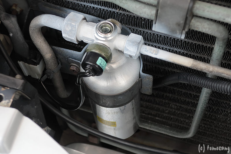 漏れ(というか滲み)に気が付いたのは前回の車検時。全く冷えないというわけでもなく、乗る機会も少ないので誤魔化しつつ夏を乗り切る。そんなことしてたら全く冷えなくなりました。