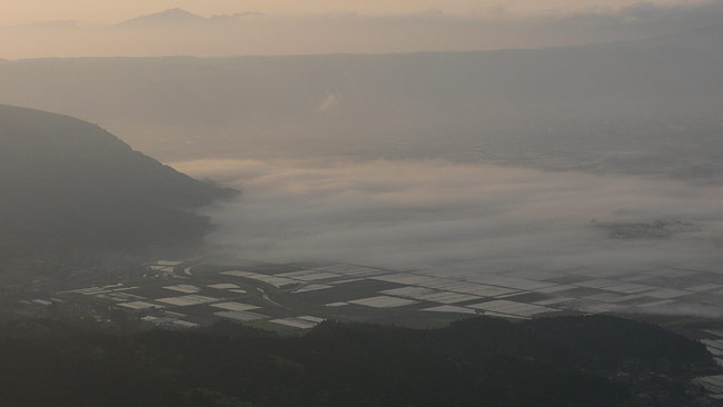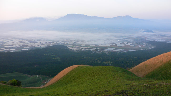 毎度の事ながら、ETC割引適用させるために深夜出発。日田経由で大観峰へ。軽く雲海が出ています。