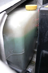 MAXの線をかなり超えた量入ってます。しかし少ないよりは良いだろう。暖まった状態でこの量ならタンクからあふれ出る心配もないだろうし。