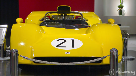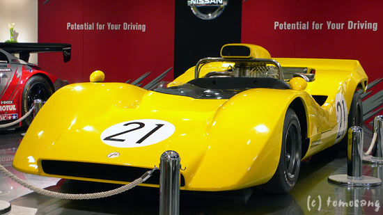1968年の日本グランプリで優勝したR381は、開発期間の少なさからやむなくシボレー製エンジン(ムーンチューン)を使用していましたが、'69日本グランプリには、自社開発の6L・V12・DOHCエンジン(600PS)を搭載したR382で臨みました。結果は、ポルシェ、トヨタ勢を退け、R382が1位(黒沢)・2位(北野)を独占しました。