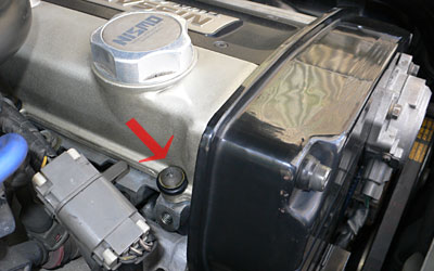 これまたそのついでにロッカーカバーを止めているボルトのワッシャー交換も勧められました。赤矢印の部品です。