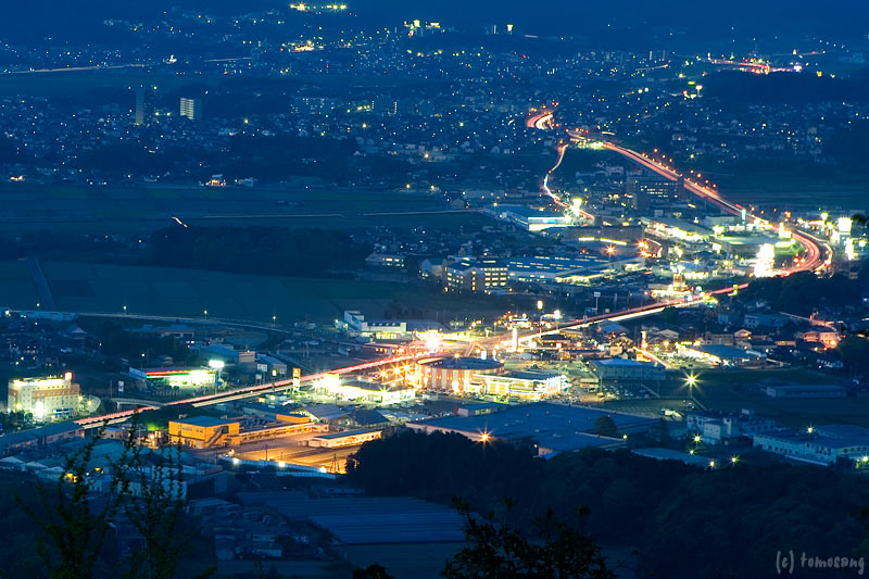 商業施設の照明は強く飛びやすい。飛ばない程度の全体が完全に暗くなる前に撮影すると、他の一般住宅地に光りが乏しい。住宅街にも光りが点し出した頃には空もその分暗くなっているので露出をあげる。すると商業施設部分が飛んでしまう。露出を抑えると暗部が潰れる・・・・