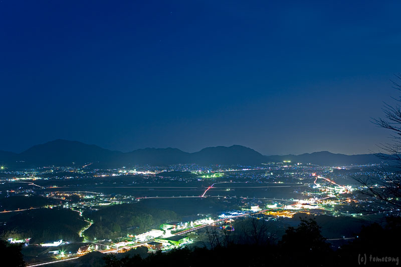 田んぼの占める割合が影響して、暗部が多いので意外に面白味のない夜景だった。