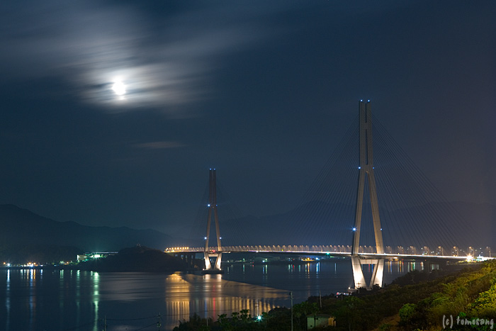 到着は午前1時頃。街灯などは一本も無く、車のライトを消すと闇の中に橋が浮かび上がる。