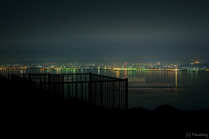 レンズを左にパンすると今治市街の夜景が見えます。