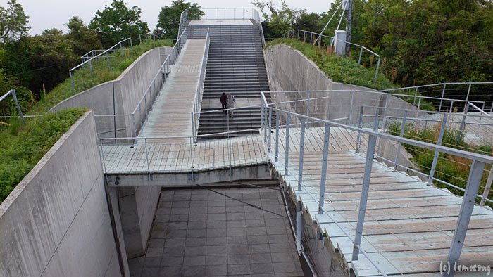 展望台はモダンな構造をしていて、地中に埋もれた様に作られている。恐らく、離れた場所からこちらを見ても展望台の存在がわからない様、景観を意識して建てられたものだと思う。本来はここから来島海峡を展望するのだろう。昨晩はあまりの暗さに全く気が付かなかった。