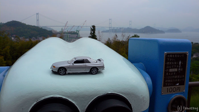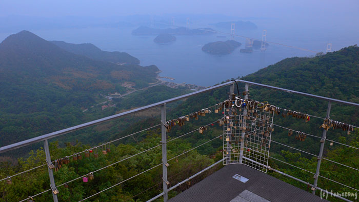 振り返って駐車場側を見下ろすと、しまなみ海道が見えます。